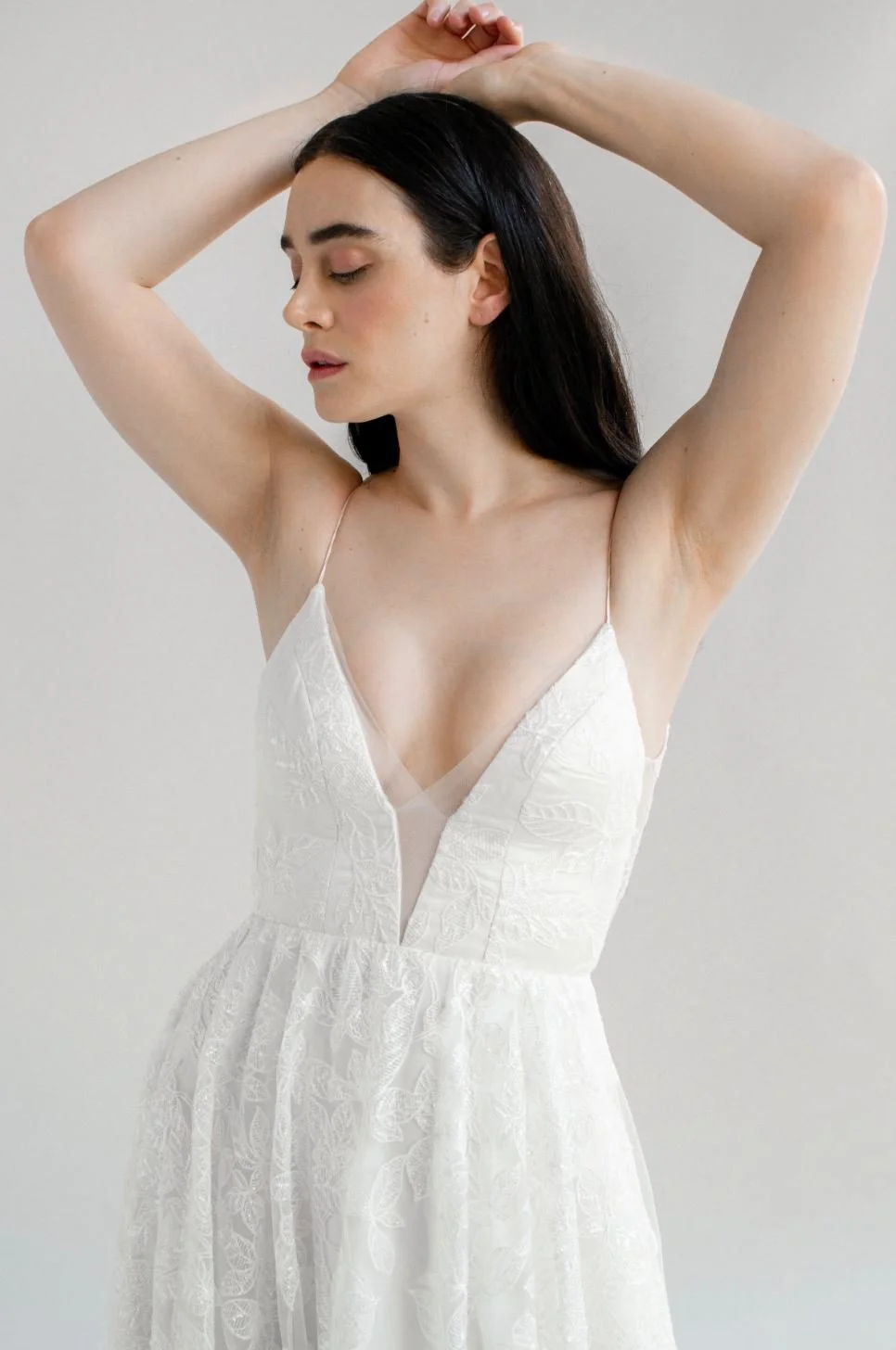 • Plunging V neckline